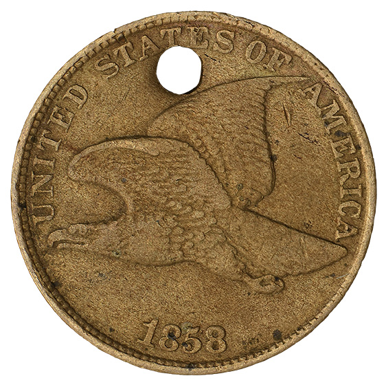 Last year, the ANA decided to deaccession a collection of holed cents it had received in 1972. To my delight, the Education Department saved them as rewards for young numismatists (YNs). I had the chance to bid on one of these special coins during the 2025 YN Auction. After examining it in the catalog, it soon moved up in my list as a high-priority item. After some competitive bidding with other young collectors, I successfully placed the winning bid. The coin, an 1858 Flying Eagle cent, has a fascinating backstory that I’ll recount below. I enjoyed the story so much that I bought a damaged coin due to it, so I hope you enjoy it too!