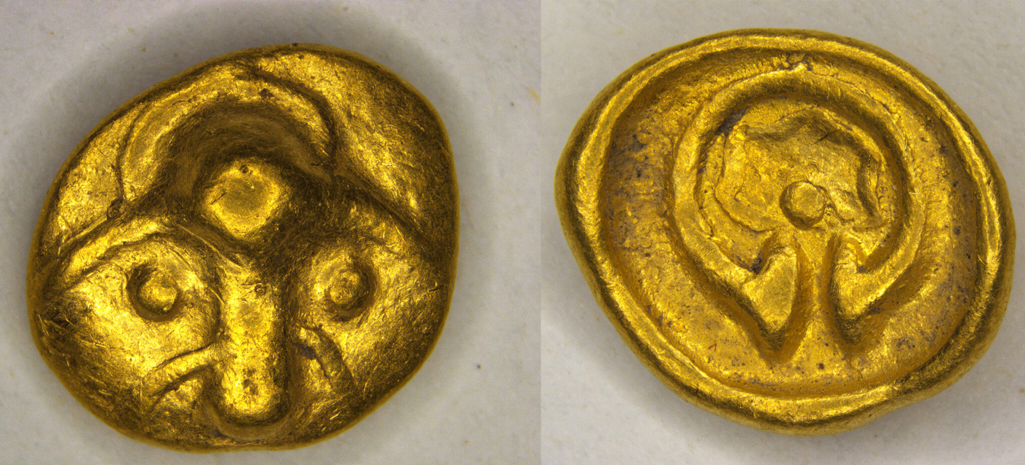 A small find has made a big impact on Saxony’s numismatic history. Daniel Fest, a certified hobby detectorist, uncovered a 2,200-year-old Celtic gold quarter stater in a field near Lipzig-Gundorf. Fest reported the find to German authorities, and the State Office for Archaeology in Dresden officially presented the discovery this week. The 2g quarter stater is the oldest coin found in Saxony and proves that, though Saxony wasn’t within Celtic settlement areas, consistent trade occurred in the region. Prior to this discovery, the oldest known coin in this region was a silver Büschelquinar from the early 1st century B.C. that was discovered in 2007. A total of 11 Celtic coins in Saxony are now known.