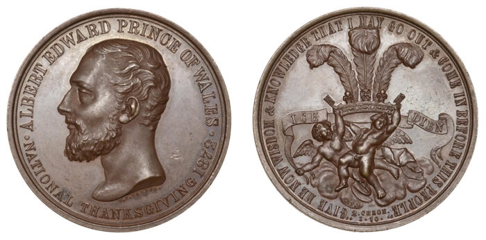 This 1872 medal was made to celebrate Prince Edward VII’s recovery from typhoid fever. (Photos: Noonans Auction)