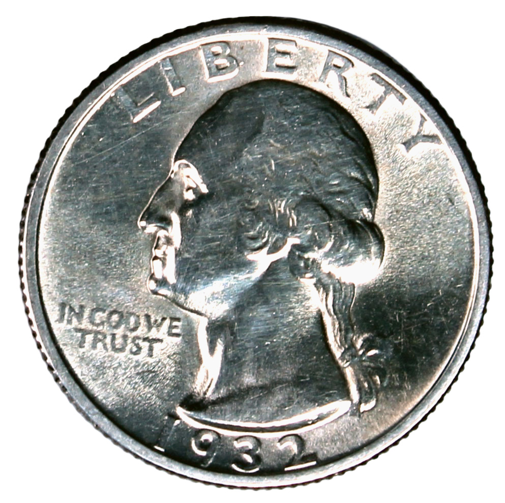 This 1932 Washington quarter has been subjected to abrasive cleaning, which left scratches on the president’s bust and in the field. (Photo: Kevin Wang)