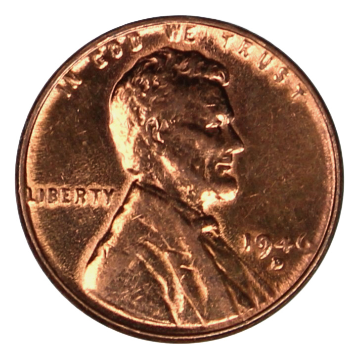 Polishing often results in rounded lettering and a prooflike appearance, as evidenced by this 1946-D Lincoln cent. (Photo: Kevin Wang)