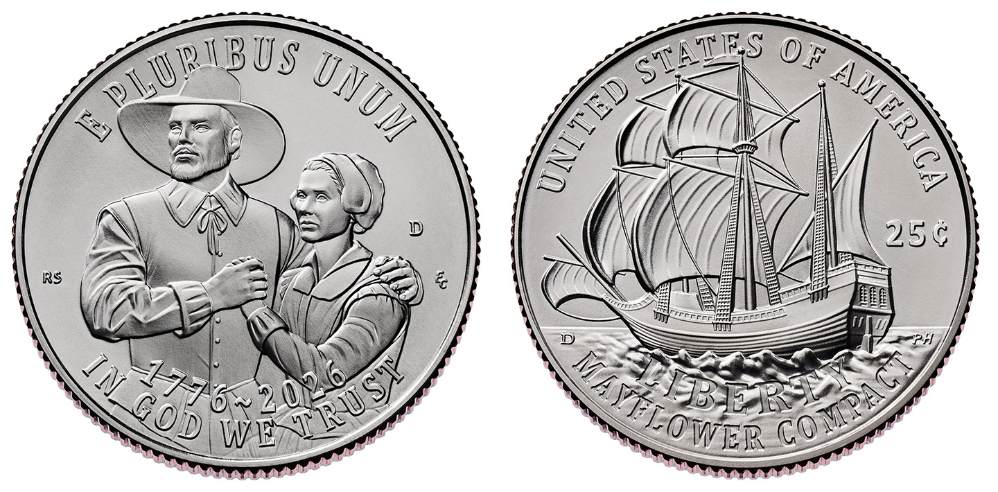 One of the first 2026 semiquincentennial coins arrives in circulation with the release of the Mayflower Compact quarter. The coin’s design was not widely anticipated, as neither the Mayflower Compact theme nor the motif that appears on the quarter was recommended by the Citizens Coinage Advisory Committee (CCAC) to then-Secretary of the Treasury Janet Yellen in October 2024.