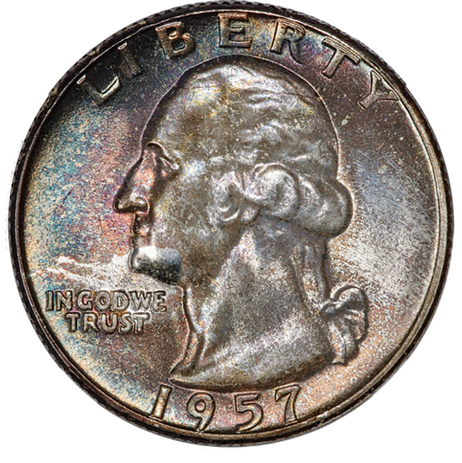 A 1957 Washington quarter shouldn’t cost hundreds of dollars. This (MS)-67 example sold for $53 through Heritage Auctions. (Photo: Heritage Auctions)