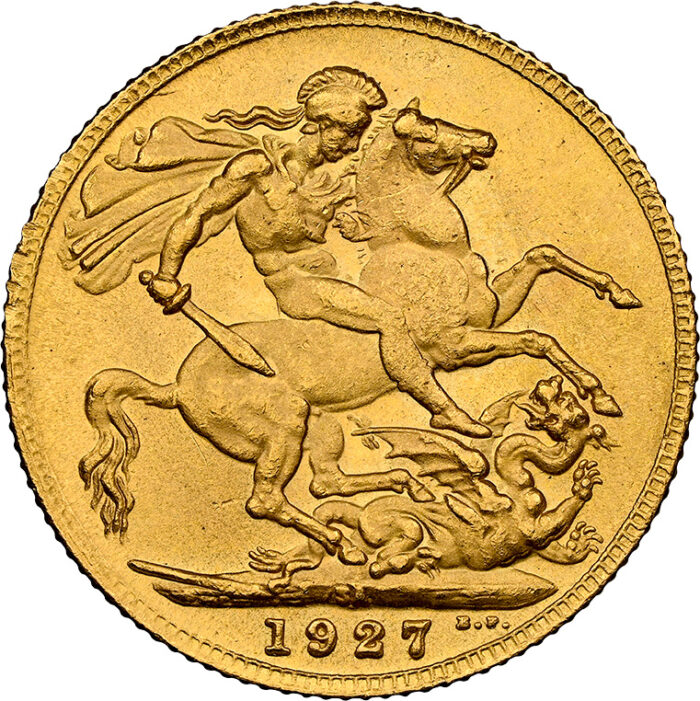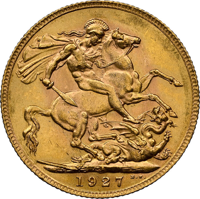 In 1817 the United Kingdom started striking modern sovereigns, with production eventually expanding to Australia, Canada, India, and South Africa. The Pretoria Mint struck sovereigns with the “SA” mintmark (located in the ground above the date) for a decade starting in 1923. The rarest South Africa sovereigns are those from the inaugural year and 1924.